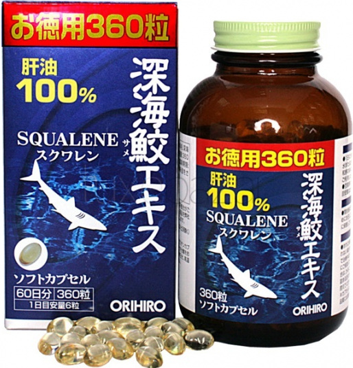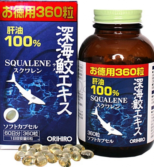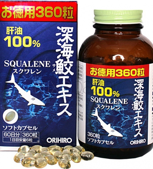 99.6% сквален из жира печени акулы, способствует заживлению ран, повышает энергетику организма, защищает от инфекций, борется с аллергией, поддерживают нормальный уровень эритроцитов в крови. Обладает способностью тормозить рост опухолевых клеток.